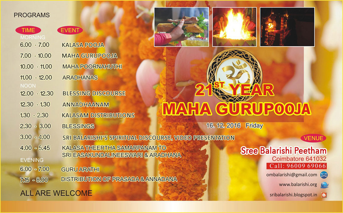 21st Maha Guru Pooja @ Sri Balarishi Peetham