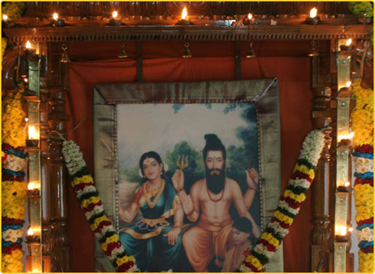 Her spiritual journey manifested itself at Her very tender age and through the grace of the Siddhas she had her first spiritual experience. Of the Siddhas, Bhaguladevi samedha Sri Kaagabujandar filled and continues to fill her inner self. The blessings and divinity of the Siddhas blossomed in her mind as sound vibrations and beyond that they became rhythmic